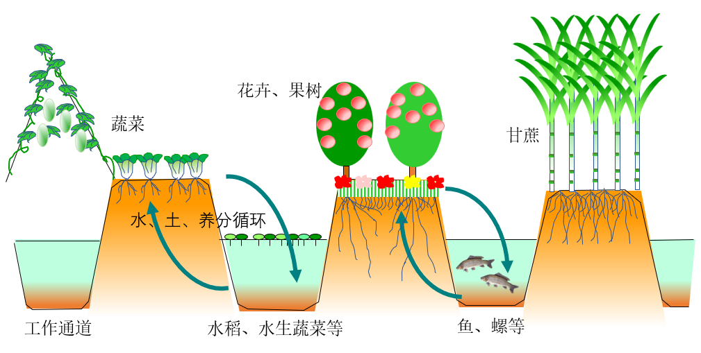 珠水汤汤,穿城长流。早在秦汉时期,海珠先民就摸索出在珠江水位不定的环境中“挖泥成沟、垒土为畦”的智慧。他们充分利用高温多雨、地处珠江口北缘、水网密布的自然条件,通过顺涌建围、设置闸梪、挖沟抬畦、沟(涌)泥上田,发展旱作为主、兼顾养殖,巧妙构建了旱涝保收的“基围+水梪+高畦深沟+园艺作物+禽鱼养殖”生产模式及“水—果(菜、花卉)—草—鱼—鸟”完整的生态链。