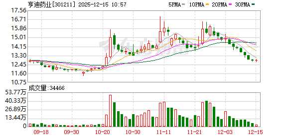 证券时报·数据宝统计,截至发稿,亨迪药业最新股价为12.74元,下跌0.39%,本期筹码集中以来股价累计下跌16.13%。具体到各交易日,1次上涨,10次下跌。